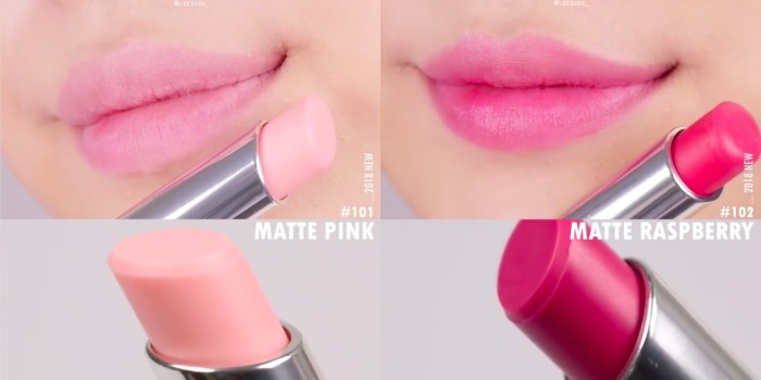 MATTE PINK จะออกโทนชมพูที่เป็นธรรมชาติเหมือนสี 001 แต่ให้ลุคที่แมตต์จ้า