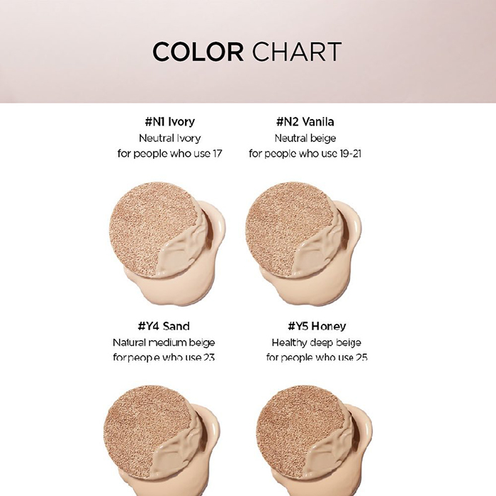 Masterclass Radiant Cushion ของ JUNGSAEMMOOL มีให้เลือกทั้งหมด 4 เฉดสี ได้แก่ สี N2 Vanilla , สี Ivory, สี Sand และ สี Honey* ซึ่งเป็นสีล่าสุดที่สำหรับสาวๆ ผิวเข้ม ที่ก่อนหน้านี้หลายคนตามหาคุชชั่น Masterclass Radiant Cushion โทนสีน้ำผึ้งกันใหญ่ ต่อไปจะได้ใช้กันแล้วจ้า เพราะ JUNGSAEMMOOL ออกสีใหม่มาตอบโจทย์แล้วล่ะ