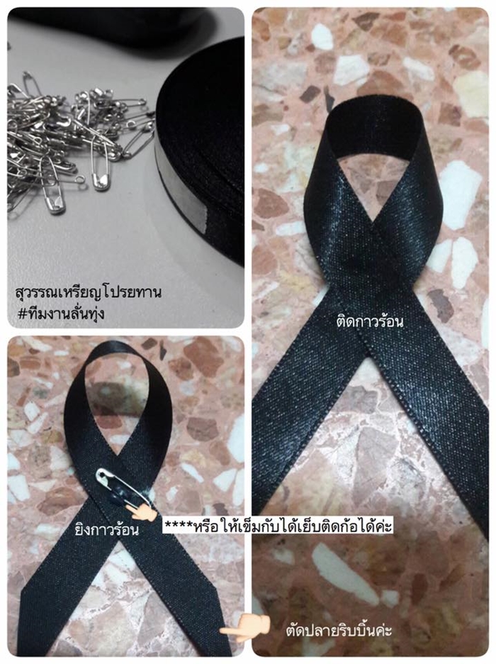 โบว์ริบบิ้นสีดำเป็นอีกหนึ่งสิ่งสำคัญที่เหมาะสมสำหรับการไว้อาลัย โดยเฉพาะพนักงานที่ต้องสวมชุดยูนิฟอร์มที่ไม่ใช่สีดำ รวมถึงประชาชนทั่วไปที่สามารถติดโบว์ไว้ที่หน้าอกข้างซ้าย หรือแขนเสื้อ พร้อมกับเสื้อผ้าสีทึบ เพื่อเป็นการแสดงความอาลัยได้เช่นกัน วันนี้เราจึงรวบรวมวิธีทำโบว์จากริบบิ้นหลากหลายรูปแบบ ซึ่งสามารถนำไปประยุกต์ใช้ในการทำโบว์ด้วยตนเอง จะทำไว้ติดเอง หรือทำแจกก็ได้ทั้งนั้น
