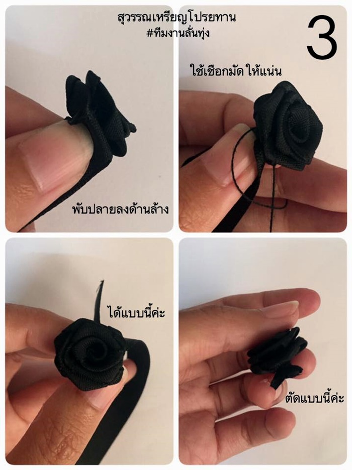แบบที่ 5 การทำดอกกุหลาบจากริบบิ้น