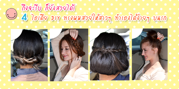 แต่อย่าเพิ่งหมดหวังกันไปค่า เรายังมีช่วงเวลาที่ต้องอยู่บนรถกันอยู่ สาวๆ คนไหนไม่ได้ขับรถด้วยตัวเอง หรือ จะขับเอง แต่ทำในช่วงเวลารถติดกันก็ได้ ลองมาชม 4 ทรงผมสวย ที่สามารถ DIY ด้วยตัวเองบนรถ ซึ่งวันนี้เรานำมาฝากกันดูซะก่อน เมื่อได้รู้ทรงผมง่ายๆ แต่สวยไม่เบาแบบนี้ สาวๆ จะได้นำไปทำกันดูบนรถ แค่นี้ ถึงเราจะรีบ เราจะมีอุปสรรคก่อนออกจากบ้านมากมาย แต่ยังไง เราก็ยังมีผมสวยได้ในทุกวันแล้วนะคะ ว่าแต่ว่าจะมีทรงไหนบ้างนะ ลองไปชมกันดูเลยค่า