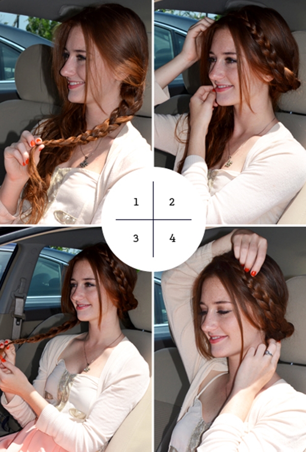 STEP 2 จับผมเปียที่ถัก ขึ้นมาพันด้านบน เหมือนกับที่คาดผม จากนั้นติดกิ๊บเอาไว้