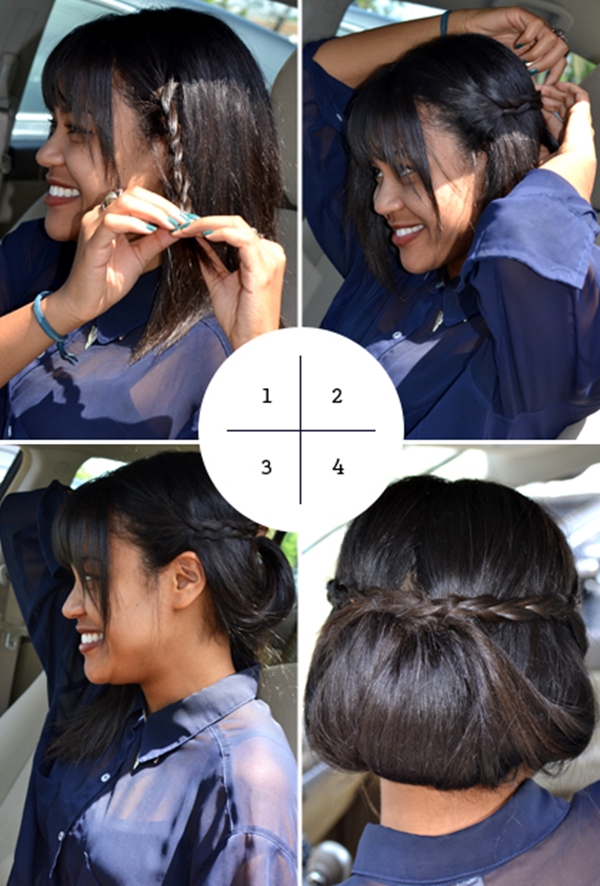 STEP 4 จับผมเปียที่ถักใน STEP 3 ขึ้นมาพันด้านบน เหมือนกับที่คาดผม จากนั้นติดกิ๊บเอาไว้ เท่านี้ก็จะได้อีกทรงผมน่ารักๆ ดูอ่อนหวานกันแล้วค่ะ