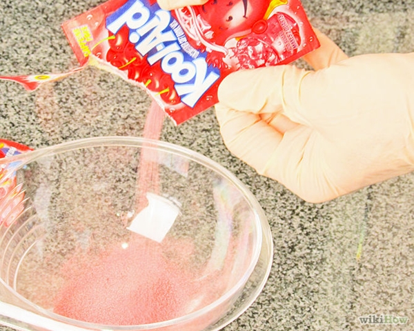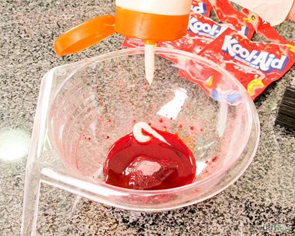 - ขั้นตอนที่ 2 : การเตรียมสีย้อมผมจากผงเครื่องดื่มสำเร็จรูป Kool-Aid