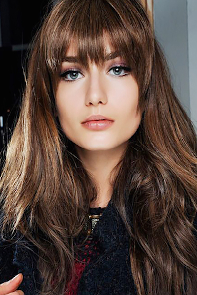 20. หน้าม้ายาวระดับสายตาเข้ากันได้ดีกับผมยาว