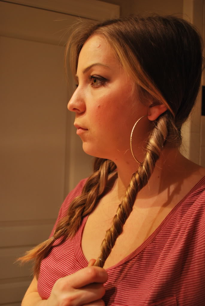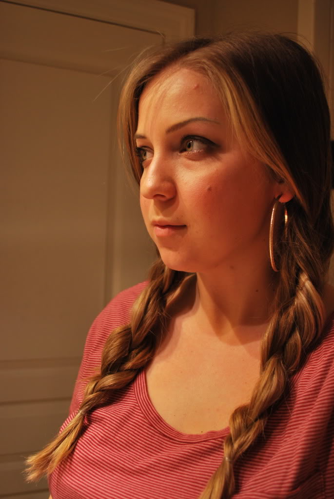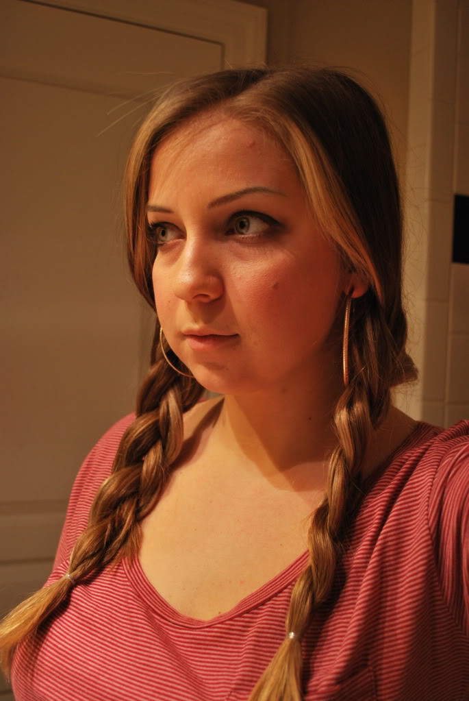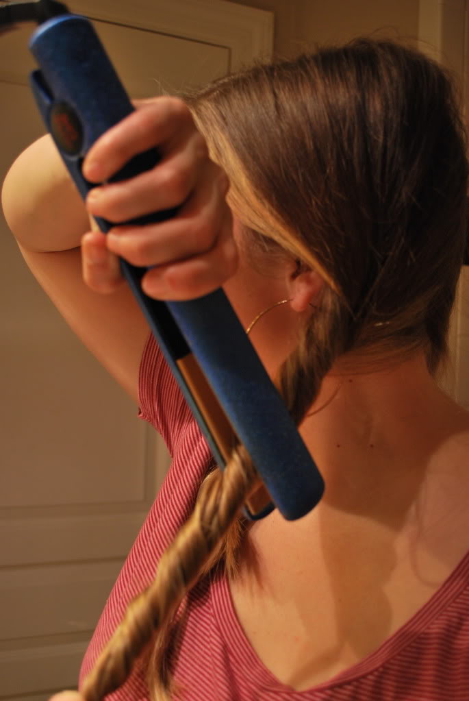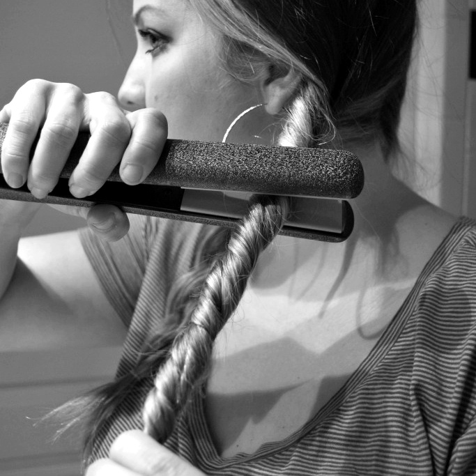 2. จากนั้นก็เริ่มถักเปียง่ายๆ สองข้าง ระหว่างถักเปียก็ไปเปิดสวิตซ์วอร์มความร้อนของที่หนีบผมรอซะก่อน