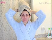 STEP 1 สระผมให้เรียบร้อย และเช็ดผมให้แห้งหมาดๆ ด้วยผ้าเช็ดตัว แล้วเอาผ้าเช็ดตัวม้วนผมขึ้นไปให้แน่น บิดเป็นเกลียว หลังจากปล่อยออกมาจะเห็นว่าผมธรรมชาติของเราเป็นลอนคลายๆ อยู่