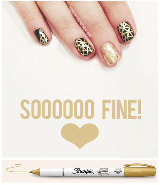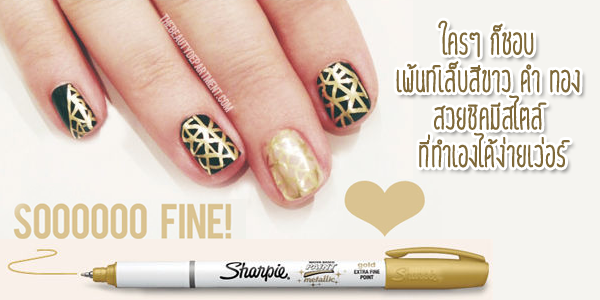 แบบเล็บสีขาวดำจากปากกา Sharpie สีทอง