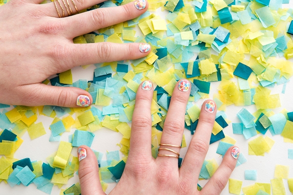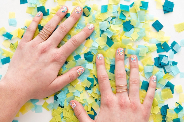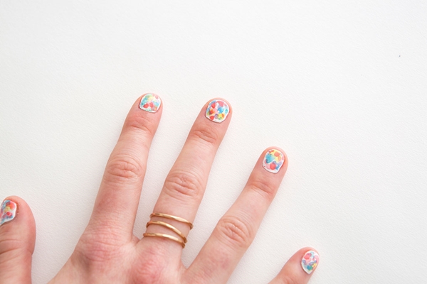 STEP5 ทำซ้ำใน STEP ที่ 2-3 ใหม่อีกครั้ง โดยเริ่มเปลี่ยนสียาทาเล็บไปตามที่เตรียมไว้ ทั้งสีเขียวมะนาว สีฟ้าอมเขียว สีฟ้าสดใส และสีม่วงอ่อน เมื่อทำจนครบทุกสีลงบนพื้นสีขาวทุกเล็บแล้ว ก็จะได้ลายเล็บน่ารักๆ สไตล์สีน้ำ ที่เห็นแล้วสดใสน่าดูเลยทีเดียวแล้วล่ะค่ะ
