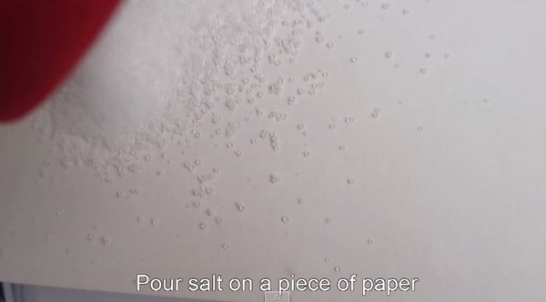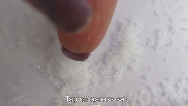 STEP 2 เทเกลือลงบนกระดาษเอสี่ที่เตรียมไว้แล้วพักไว้ก่อน