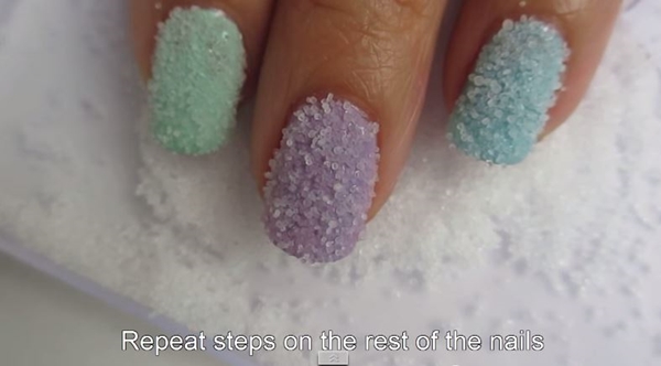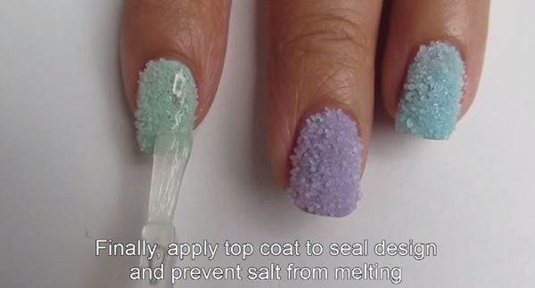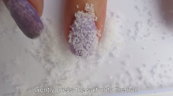 STEP 5 เกลี่ยเกลือบนเล็บให้กระจายทั่วเบาๆ