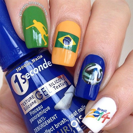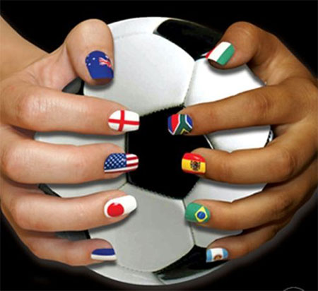 แน่นอนว่าหลายวันมานี้ ไม่ว่าที่ไหนๆ เราก็มักจะเห็นอะไรๆ ที่เกี่ยวกับบอลโลกไปเสียหมด หรือชื่อเต็มๆ ว่า FIFA World Cup 2014 ซึ่งจัดขึ้นที่ประเทศบราซิลในปีนี้ ทั้งการตกแต่งสถานที่ ข้าวของ สินค้าต่างๆ ก็ใช้เทรนด์ฮิตบอลโลกนี้มาเป็นตัวกระตุ้นยอดขาย จับมาเป็นไอเดียสร้างสรรค์สิ่งต่างๆ รอบตัวเราไปหมด ไม่เว้นแม้แต่การเป็นแรงบันดาลใจให้สาวๆ ต่างประเทศที่รักลูกหนังมาอวดเล็บสวยๆ กับดีไซน์นี้ไปกันด้วย บ่งบอกให้โลกรู้ว่าเรารักทีมไหน เชียร์ทีมไหนกันอยู่