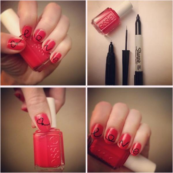 และในวันนี้เราก็มีแบบเล็บ DIY ง่ายๆ ที่จะมาชวนคุณเพ้นท์เล็บสีแดง เขียนคำว่า LOVE บอกรักผ่านเล็บสวยๆ กันด้วยค่ะ โดยใช้ปากกา Sharpie สีดำ มาช่วยวาดเส้นสวยๆ ลงไปบนเล็บเราให้ง่ายยิ่งขึ้น ว่าแล้วสาวๆ คนไหนอยากมีลายเล็บสวย หรือ อยากลองใช้ปากกา Sharpie เพ้นท์เล็บกันดูบ้าง ก็ลองมาทำเล็บลายนี้ ง่ายๆ แต่เก๋ไก๋กันดูได้เลย