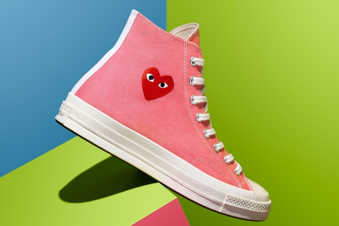 Converse และ COMME des GARÇONS PLAY ได้ร่วมมือกันอีกครั้ง ครั้งนี้หยิบเอาสนีกเกอร์โมเดลสุดฮิตอย่าง Chuck 70 ทั้งแบบหุ้มข้อและทรงต้นตำหรับ มาในโทนสีสันสดใส 3 สีสุดแซ่บ ไม่ว่าจะเป็นสีเขียวเลม่อน สีฟ้าพาสเทล และ สีชมพูสุดคิ้วท์ ที่มพร้อมกับสัญลักษณ์รูปหัวใจจาก COMME des GARÇONS PLAY ที่ช่วยเพิ่มความดีเทลให้กับสนีกเกอร์คู่นี้