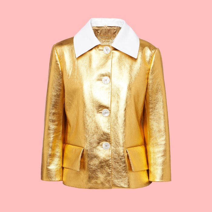 #1 แจ็กเก็ตลามิเนตหนังนัปป้าสีทอง Prada ราคา 3,800 หรือประมาณ 120,000 บาท