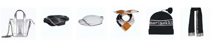 แอคเซสซอรี่สำหรับคอลเลคชั่นนี้ หมวกและผ้าพันคอ จะเน้นผ้าวูลที่มีความนุ่มเป็นพิเศษ พร้อมพิมพ์โลโก้แบรนด์ มารีเมกโกะ และสำหรับคนที่ชื่นชอบกระเป๋าจะต้องหลงรักคอลเลคชั่นนี้เป็นพิเศษ เพราะคุณจะได้พบกับกระเป๋ารุ่น Milli Matkuri ที่มาในเวอร์ชั่นสีซิลเวอร์ นาโน และกระเป๋าหนังแท้รุ่น Karla bag ในโทนสีเทาเป็นครั้งแรก พร้อมสายโซ่โลหะ ที่จะคอมพลีทลุคของคุณตลอดซีซั่นนี้