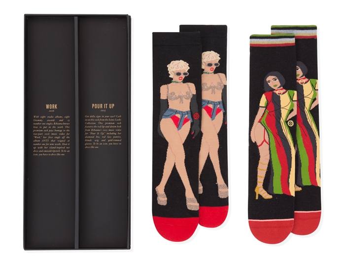 โดยถุงเท้าคอลเล็กชั่น Iconic Looks นี้ ขายเป็นบ็อกเซ็ต 2 แบบ ได้แก่ Rihanna Music Video Box และ Rihanna Award Show Box ประกอบด้วยถุงเท้า 2 คู่ ราคากล่องละ 1,720 บาท แฟนพันธุ์แท้จิ้มด่วน!
